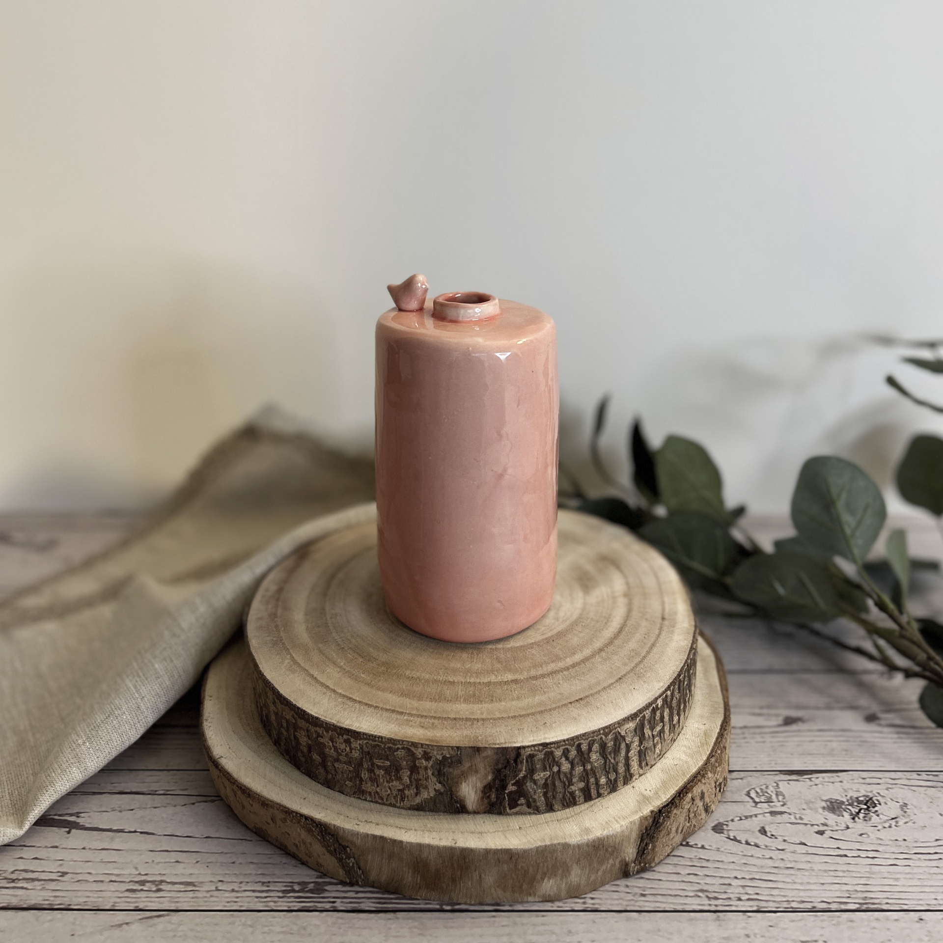Jarra elegante com apontamento de passarinho, para decorar o ambiente com um toque delicado.