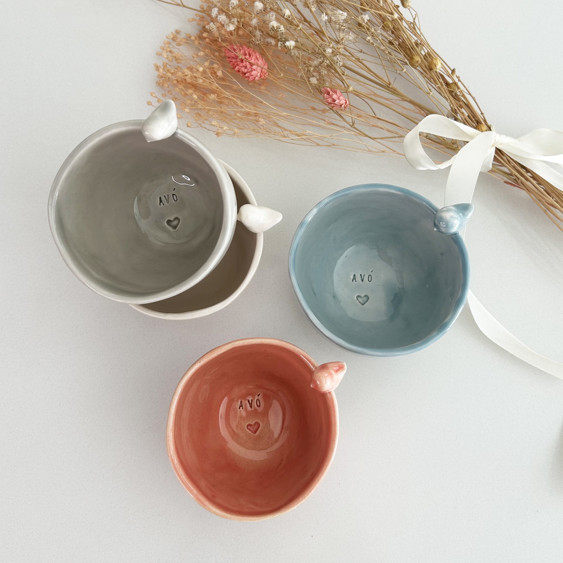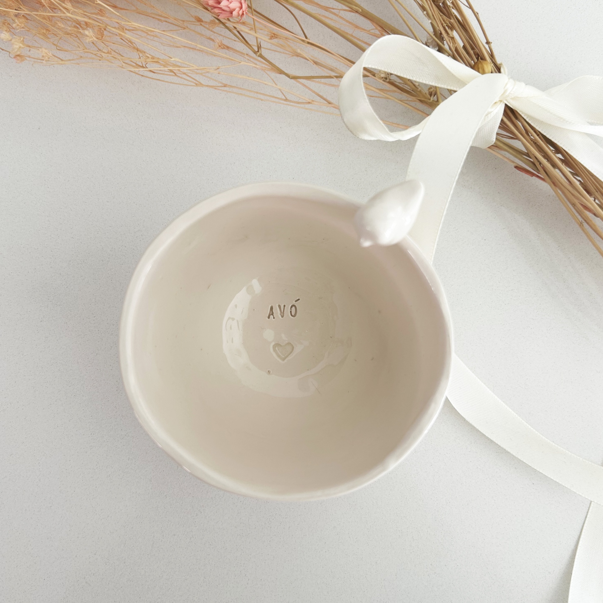 • Taça de cerâmica branca com palavra 'AVÓ' e coração no interior