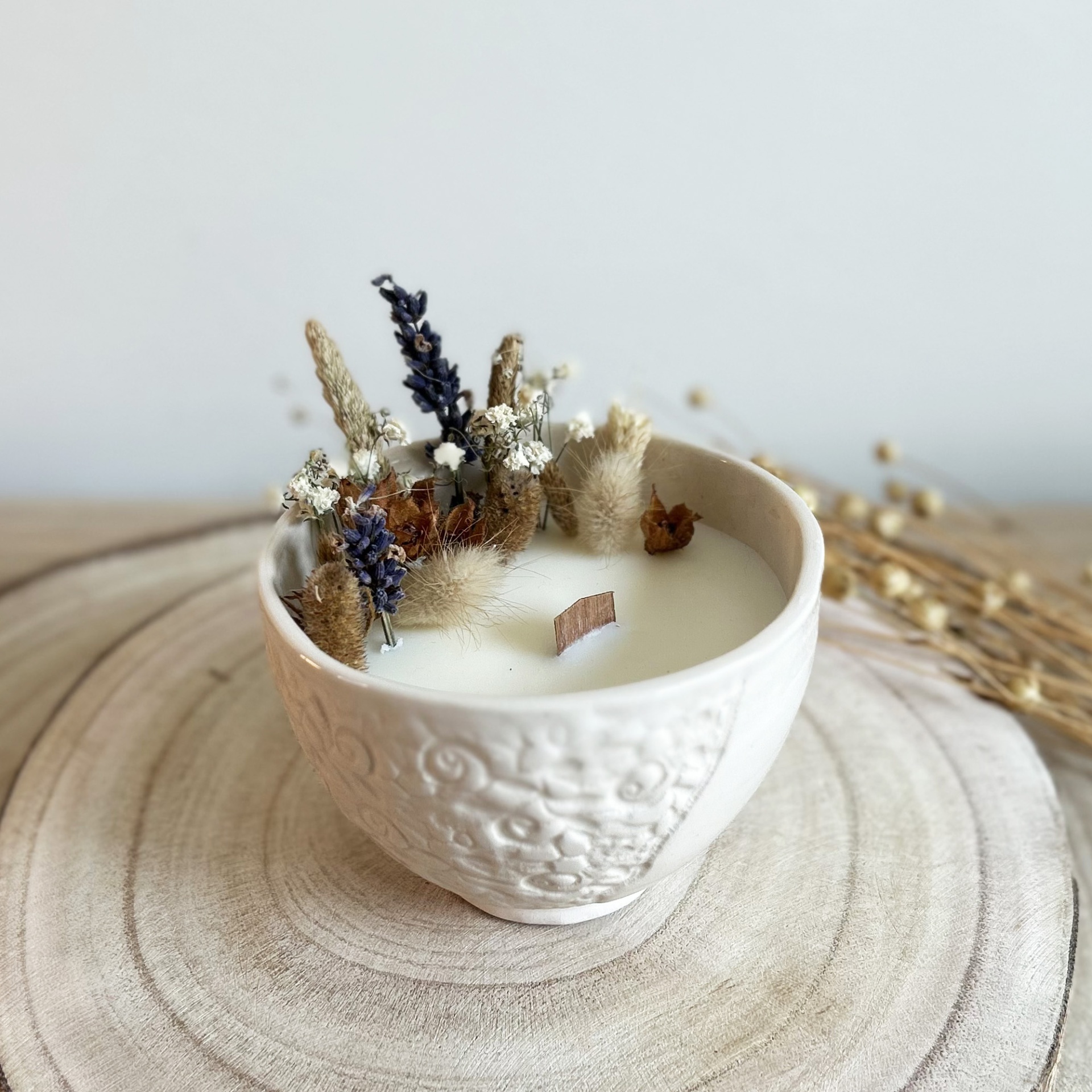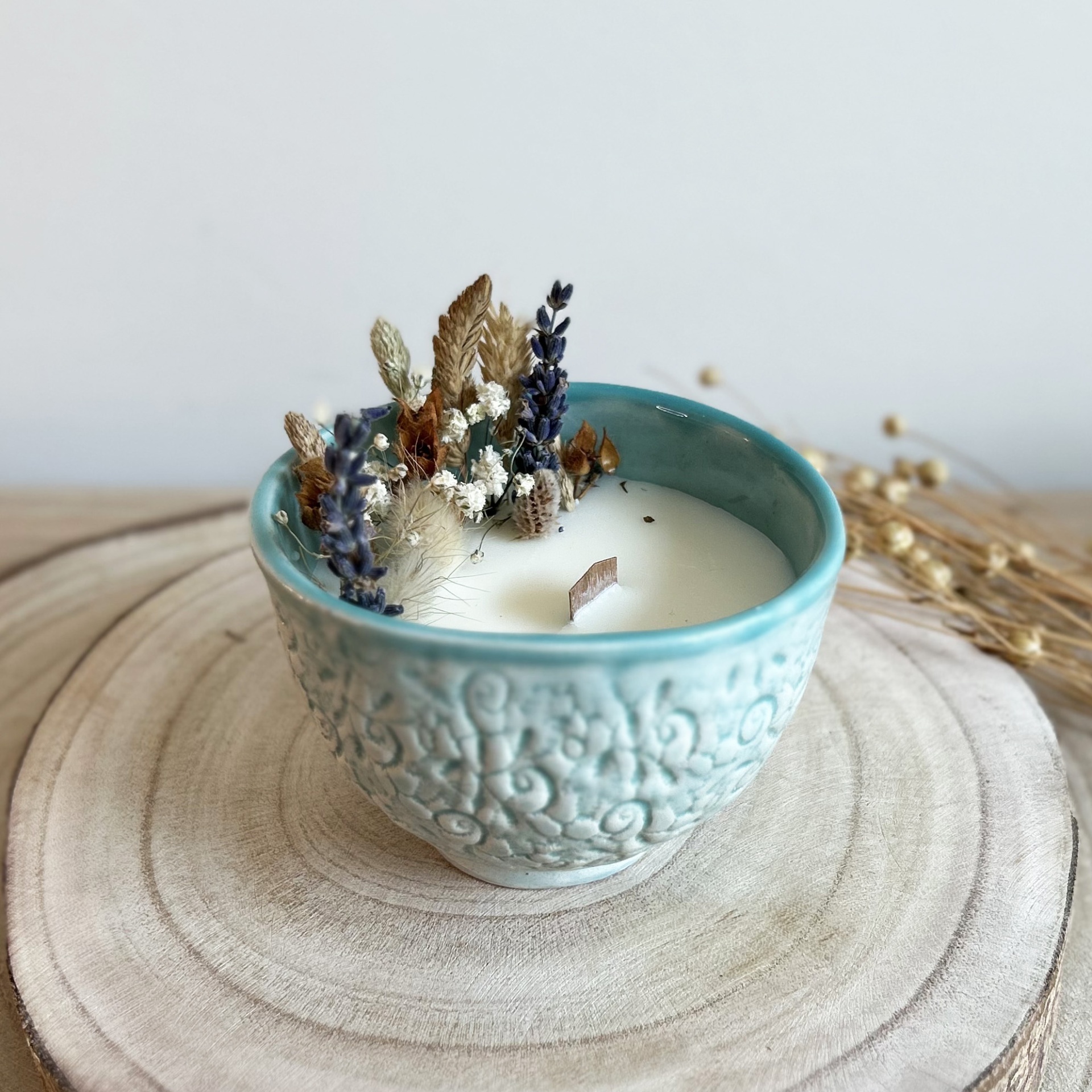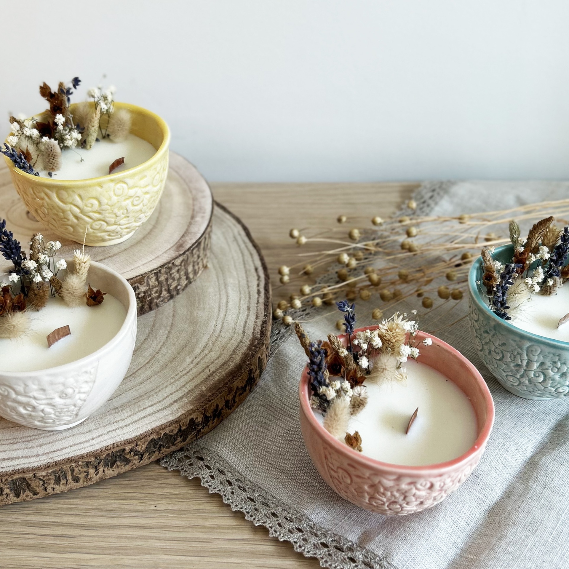 Vela Artesanal Bordados 15,00 € Desconto de %. Partilhar O produto encontra-se sem stock. Vela artesanal em taça com textura de bordado, cuidadosamente feita à mão, com vela em cera de soja e flores secas naturais. Disponível em 4 tons. Diâmetro: 9 cm Altura: 6 cm Nota: Peça de artesanato feita à mão, cada peça é única. Fabricada em Portugal.